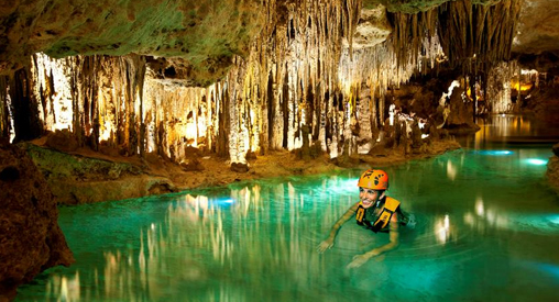 Aquí podrás ser testigo de millones de años de historia es un mágico lugar, podrás recorres 600 metros, nadando y caminando a través de sus bellas rutas entre estalactitas y estalagmitas.
