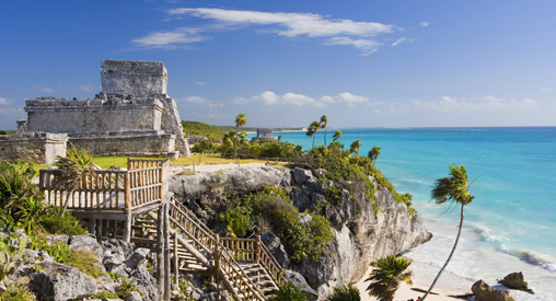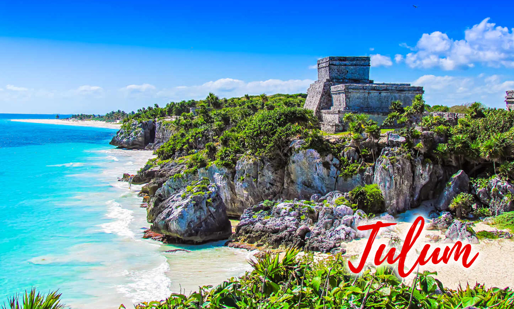 Tulum está localizado a 130 Km al sur de Cancún y es considerada por muchos como las más bellas. Son pequeñas pero impresionantes, situadas por encima de un pequeño acantilado 15 metros limitando las azul-turquesas aguas de Mar Caribe. La ruinas de Tulum tienen una de las playas más hermosas de la Riviera Maya. La más grande atracción de Tulum es la combinación de las imponentes ruinas con las asombrosas tonalidades del Mar Caribe. Tulum en maya significa "pared" ya que es una ciudad amurallada, una de las muy pocas ciudades ancestrales con esta característica.